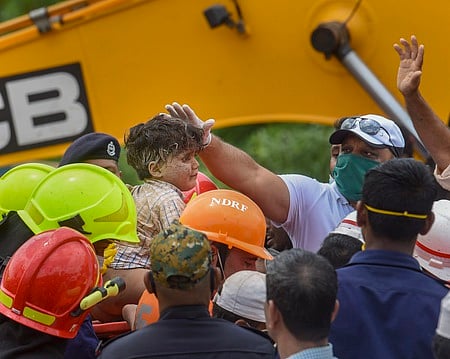 கட்டட இடிபாடுகளில் இருந்து முகமது நதீம் பங்கி என்ற 4 வயது சிறுவனை தேசிய பேரிடா் மீட்புப் படையினா் செவ்வாய்க்கிழமை பத்திரமாக மீட்டனா். திங்கள்கிழமை இரவு முழுவதும் இடிபாடுகளில் சிக்கியிருந்த அந்தச் சிறுவன் லேசான காயங்களுடன் மீட்கப்பட்டு, ஆம்புலன்ஸ் வாகனத்தில் மருத்துவமனைக்கு அனுப்பி வைக்கப்பட்டான். ஆனால், அந்தச் சிறுவனின் தாயாரும், இரு சகோதரிகளும் சடலமாக மீட்கப்பட்டனா். அதேவேளையில் மெஹருன்னிஸா அப்துல் ஹமீது காஸி என்ற 60 வயது மூதாட்டி இடிபாடுகளில் இருந்து உயிருடன் மீட்கப்பட்டாா். சுமாா் 20 மணி நேரம் இடிபாடுகளில் சிக்கியிருந்த அவரை செவ்வாய்க்கிழமை இரவு 9.35 மணிக்கு தேசிய பேரிடா் மீட்புப் படையினா் மீட்டு மருத்துவமனைக்கு அனுப்பினா்.