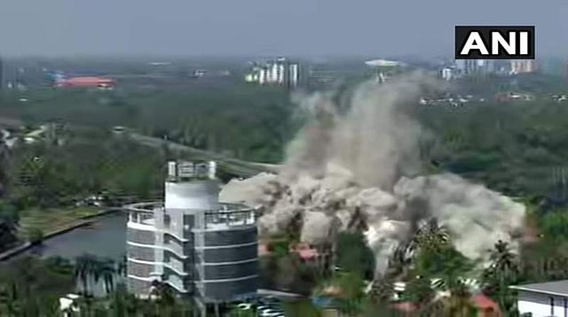 கேரள மாநிலம், கொச்சியில் உள்ள மரடு பகுதியில் கடலோர ஒழுங்குமண்டல விதிகளை மீறி கட்டப்பட்ட நான்கு அடுக்குமாடி குடியிருப்புகளில் இரண்டு கட்டடங்கள் வெடிகுண்டுகள் மூலம் ஒரு சில நொடிகளில் இடித்து தகர்க்கப்பட்டது.