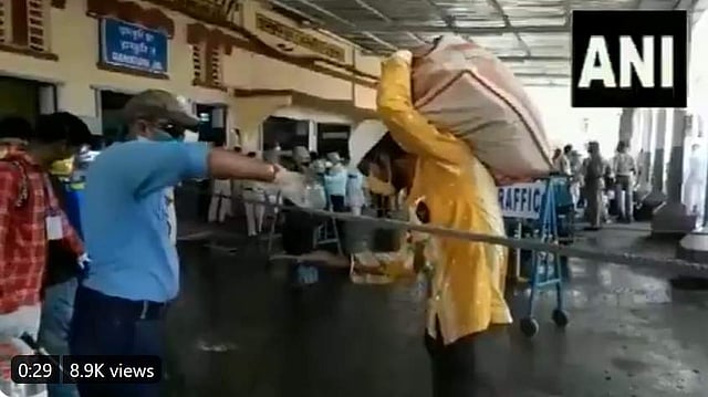 ஹூக்ளி: வெளி மாநிலங்களில் இருந்து சிறப்பு ரயில்கள் மூலம் மேற்கு வங்க மாநிலம் ஹூக்ளி ரயில் நிலையத்தில் வந்திறங்கிய தொழிலாளர்கள் மீது கிருமி நாசினி தெளிக்கப்பட்டுள்ளது.