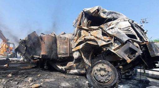 ராஜஸ்தான் மாநிலம் அஜ்மீரில் தேசிய நெடுஞ்சாலை (NH8)இல் செவ்வாய்க்கிழமை அதிகாலை எதிரெதிரே வந்த இரண்டு லாரிகள் மோதிக்கொண்டன. இதில், இரண்டு லாரிகளும் தீப்பிடித்து எரிந்தன.