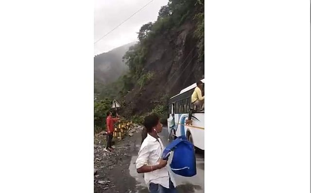 இதனைக் கண்ட ஓட்டுநர் பேருந்தை சற்று தொலைவிலேயே நிறுத்திவிட்டார். ஆனால் நிலச்சரிவை கண்டு அதிர்ச்சியடைந்த பயணிகளில் சிலர் பேருந்தின் ஜன்னல் வழியே வெளியே குதித்தும், வாசல் வழியே வெளியேறியும் தப்பியோடினர்.