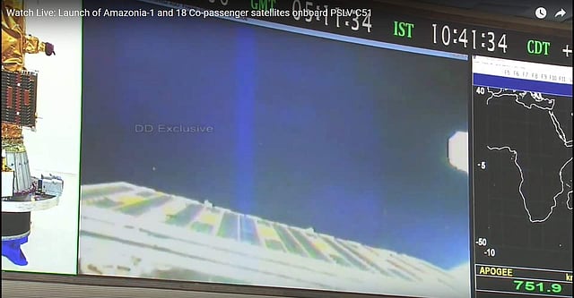 இதில், பிரேசில் நாட்டுக்கு சொந்தமான 637 கிலோ எடையுடைய அமேசானியா-1 செயற்கைக்கோளும் வெற்றிகரமாக விண்ணில் நிலைநிறுத்தப்பட்டுள்ளது.