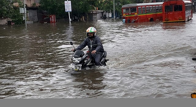 மும்பை மற்றும் புறநகரில் புதன்கிழமை பெய்த கனமழையால் சாலைகள், தண்டவாளங்கள் மழை நீரில் மூழ்கின. இதனால் புறநகர் ரயில் சேவைகள் பாதிக்கப்பட்டன.