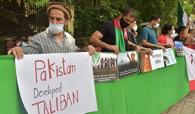 தில்லியில் உள்ள ஆப்கன் அகதிகள் தலிபான் மற்றும் பாகிஸ்தானுக்கு எதிராக செவ்வாய்க்கிழமை போராட்டம் நடத்தினர்.