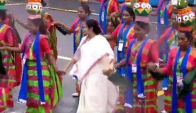 இதன்பின்னர் கலைநிகழ்ச்சிகள் நடைபெற்றன. அப்போது, நாட்டுப்புறக் கலைஞர்களுடன் மம்தா பானர்ஜி நடனமாடினார்.