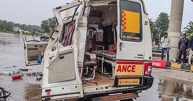 உடுப்பி: கர்நாடக மாநிலம் பைந்தூர் அருகே, அதிவேகமாக வந்த ஆம்புலன்ஸ், சுங்கச்சாவடி அருகே மோதி விபத்துக்குள்ளானதில், அதிலிருந்த ஓட்டுநர் உள்பட 4 பேரும் பலியாகினர். 4 பேர் படுகாயமடைந்தனர்.