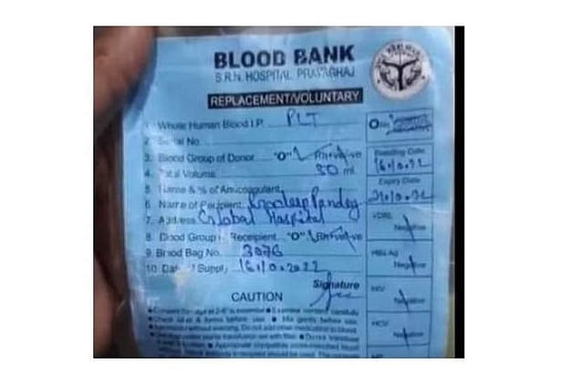 உத்தரப்பிரதேச மாநிலம் பிரயாக்ராஜ் பகுதியில் உள்ள மருத்துவமனை ஒன்றில் பிளாஸ்மாவுக்கு பதிலாக ஆரஞ்சு பழச்சாறு ஏற்றப்பட்ட சம்பவத்தில் டெங்கு நோயாளி பிரதீப் பாண்டே கடந்த மாதம் பலியானார். இது அம்மாநிலத்தில் பெரும் பரபரப்பை ஏற்படுத்தியது.