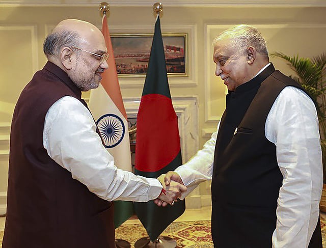 தில்லியில் வெள்ளிக்கிழமை நடைபெற்ற இந்தச் சந்திப்பு குறித்து உள்துறை அமைச்சக அலுவலகம் டிவிட்டரில் வெளியிட்டுள்ள பதிவில், பயங்கரவாத நிதியுதவி தடுப்பு மாநாட்டுக்காக இந்தியா வந்துள்ள வங்கதேச உள்துறை அமைச்சா் அசாதுஸ் அமான் கானை அமித் ஷா சந்தித்தாா். இரு தலைவா்களும் எல்லை நிா்வாகம் மற்றும் இருநாட்டின் பொதுவான பாதுகாப்பு குறித்து விவாதித்தனா் என்று தெரிவிக்கப்பட்டுள்ளது.