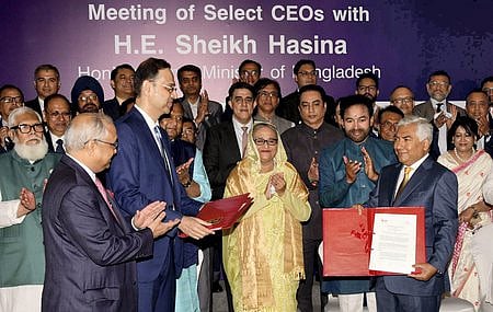 இந்திய தொழிலதிபா்கள் வங்கதேசத்தின் உள்கட்டமைப்பு திட்டங்கள், உற்பத்தி துறை, எரிசக்தி மற்றும் போக்குவரத்து துறைகளில் முதலீடு செய்யுமாறு வங்கதேச பிரதமா் ஷேக் ஹசீனா அழைப்புவிடுத்தாா்.
