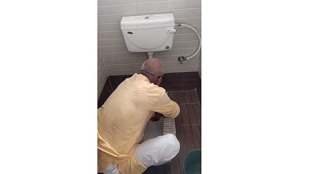 உடனடியாக ஒரு வாளியில் தண்ணீரை எடுத்துக்கொண்டு, ஜனார்தன் மிஸ்ரா தனது கைகளால் கழிவறையை சுத்தம் செய்தார். அந்த விடியோவை தனது ட்விட்டர் பக்கத்திலும் அவர் பகிர்ந்துள்ளார். தற்போது இந்த விடியோ இணையதளங்களில் வைரலாகி வருகிறது.