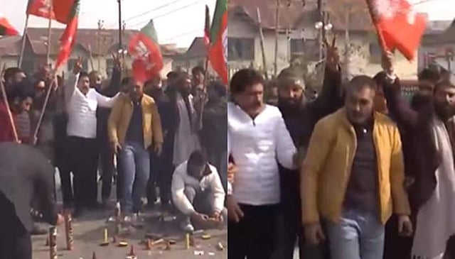 இந்நிலையில் ஜம்மு காஷ்மீரில் பாஜக ஆதரவாளர்கள் மத்திய பிரதேசம், ராஜஸ்தான், சத்தீஸ்கரில் வெற்றியை பட்டாசுகள் வெடித்து கொண்டாடினர்.