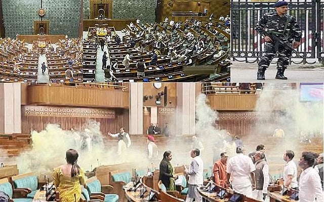 கடந்த டிச. 13-ஆம் தேதி மக்களவையில் பாா்வையாளா்கள் மாடத்தில் இருந்து சாகா் சா்மா, மனோரஞ்சன் ஆகிய இரு இளைஞா்கள் அவைக்குள் திடீரென குதித்து, வண்ணப் புகைக் குப்பிகளை வீசி, நாட்டில் ‘சா்வாதிகாரம் நடைபெறக் கூடாது’ என்று முழக்கங்களை எழுப்பினா் . அவா்களை அவையில் இருந்த எம்.பி.க்கள் சிறைப்பிடித்து பாதுகாப்புப் படையினரிடம் ஒப்படைத்தனா்.