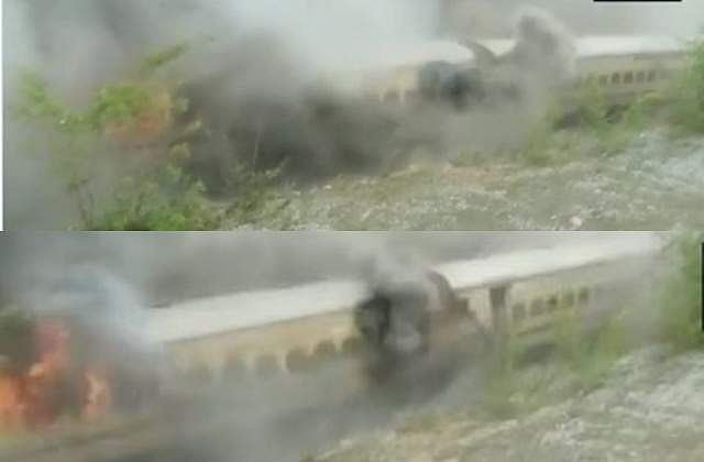 இந்த சம்பவத்தில் ரயிலின் 3 பெட்டிகள் முழுமையாகவும், 2 பெட்டிகள் பகுதியளவிலும் தீயில் கருகி சேதமடைந்தன.