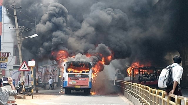 திருவனந்தபுரம் அருகே தேசிய நெடுஞ்சாலையில் பயணிகள் பேருந்து திடீரென தீப்பிடித்து எரிந்ததால் பெரும் பரபரப்பு ஏற்பட்டது.