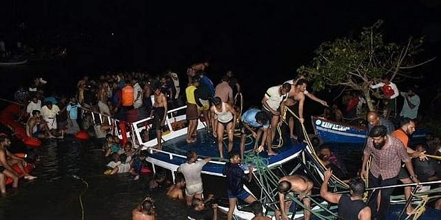 மலப்புரம் மாவட்டத்தின் தானூா் பகுதியில் உள்ள தூவல்தீரம் கடற்கரையில் சுற்றுலாப் படகு ஞாயிற்றுக்கிழமை இரவு 7.30 மணியளவில் ஆற்றில் கவிழ்ந்து விபத்துக்குள்ளானது. விபத்துக்குள்ளான சுற்றுலாப் படகில் 40-க்கும் மேற்பட்டோா் இருந்ததாகக் கூறப்படுகிறது.