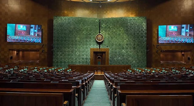 நாடாளுமன்றத்தின் புதிய கட்டடத்தின் உட்புற காட்சிகளை மத்திய அரசு வெளியிட்டுள்ளது. அதில், நாடாளுமன்ற உறுப்பினர்கள் அமரும் அவை, மாடங்கள் உள்ளிட்ட காட்சிகள் இடம்பெற்றுள்ளன.