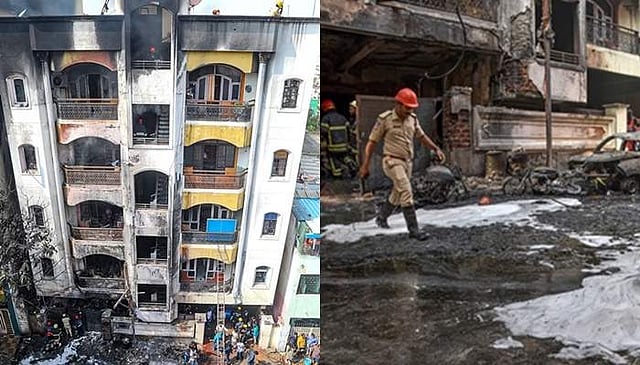 மேலும், கீழ்தளத்தில் கார் பழுது பார்த்துக்கொண்டிருந்தபோது, காரிலிருந்து வந்த தீப்பொறி அங்கிருந்த ரசாயன பீப்பாயில் பட்டுத் தீப்பற்றியுள்ளது. கீழ்தளம் முழுக்க வேகமாக பரவிய தீ, மற்ற தளங்களுக்கும் பரவியுள்ளது. இதனால் மொத்தமாக 6 பேர் பலியாகியுள்ளனர். மேலும் 3 பேர் காயமடைந்துள்ளனர் எனத் துணைக் காவல்துறை ஆணையர் வெங்கடேஷ் ராவ் தெரிவித்துள்ளார்.