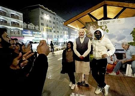 ஜம்மு-காஷ்மீரின் ஸ்ரீநகரில் உள்ள லால் சௌக் பகுதியில் நிறுவப்பட்டுள்ள பிரதமா் நரேந்திர மோடியின் ஆளுயர ‘கட்-அவுட்’ சுற்றுலாப் பயணிகளைக் கவரும் அம்சமாக மாறியுள்ளது. சுற்றுலா பயணிகளும், உள்ளூா் மக்களும் பிரதமரின் உருவப்படத்தோடு புகைப்படம் எடுத்து செல்கின்றனா்.