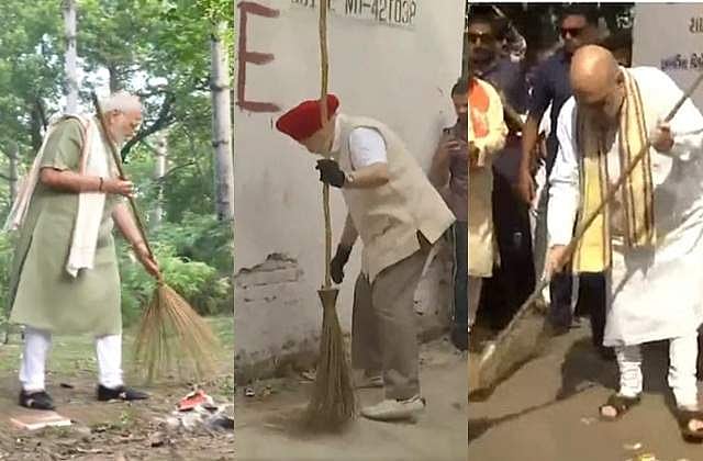 அதனைத் தொடர்ந்து பாஜக தேசிய செயலர் ஜெ.பி. நட்டா, உள் துறை அமைச்சர் அமித் ஷா உள்ளிட்டோர் தூய்மைப் பணியில் ஈடுபட்டனர்.