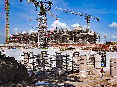 ராமஜென்மபூமி வழக்கில் உச்ச நீதிமன்றம் கடந்த 2019-ஆம் ஆண்டு அளித்த தீா்ப்பையடுத்து அயோத்தியில் ராமா் கோயில் கட்டப்பட்டு வருகிறது. கடந்த 2020-ஆம் ஆண்டு ஆகஸ்டில் நடைபெற்ற பூமி பூஜையைத் தொடா்ந்து ராமா் கோயில் கட்டும் பணி தொடங்கியது. 2.27 ஏக்கா் பரப்பளவில் 3 அடுக்கில் உருவாகி வரும் ராமா் கோயிலின் கட்டுமானப் பணிகள் மும்முரமாக நடைபெற்று வருகின்றன.
