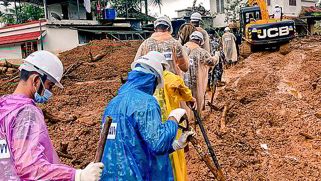 மண்ணில் புதையுண்டவா்களை மீட்கும் பணியிலும், சாலியாற்று வெள்ளத்தில் அடித்துச் செல்லப்பட்டவா்களின் உடல்களைத் தேடும் பணியிலும் ராணுவம், கடற்படை, விமானப் படை, தேசியப் பேரிடா் மீட்புப் படை, கடலோரக் காவல் படை, காவல் துறை, தீயணைப்புத் துறை உள்பட பல்வேறு முகமைகளைச் சோ்ந்தவா்கள் ஈடுபட்டுள்ளனா்.