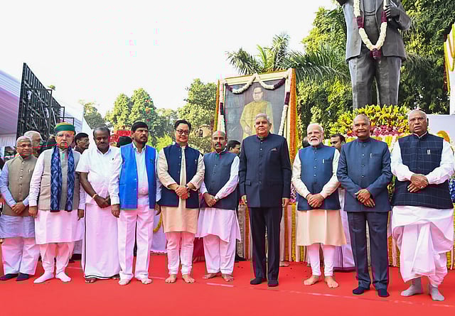 அம்பேத்கரின் நினைவு நாளையொட்டி நாடாளுமன்ற வளாகத்தில் உள்ள அவரது திருவுருவச் சிலைக்கு குடியரசு துணைத் தலைவர் ஜக்தீப் தன்கர், பிரதமர் நரேந்திர மோடி உள்ளிட்டோர் மலர்தூவி மரியாதை செலுத்தினர்.