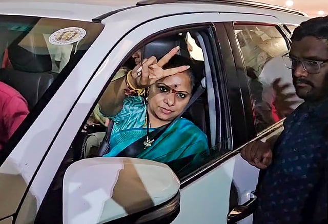 பிஆர்எஸ் கட்சியின் தலைவரும் தெலங்கானா முன்னாள் முதல்வர் சந்திரசேகர் ராவ்வின் மகளுமான கே கவிதா அமலாக்கத்துறையினரால் வெள்ளிக்கிழமை கைது செய்யப்பட்டுள்ளார். ஹைதராபாத்தில் உள்ள அவருக்கு சொந்தமான இடங்களில் வெள்ளிக்கிழமை சோதனையில் ஈடுபட்ட அமலாக்கத்துறை அதிகாரிகள் அவரிடம் விசாரணை நடத்தி வந்தனர்.