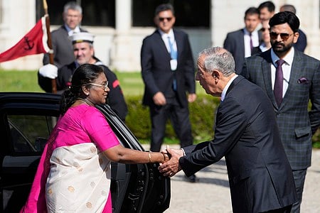 பின்னா் லிஸ்பனில் உள்ள வரலாற்று சிறப்புமிக்க பேரரசு சதுக்கத்தில் திரௌபதி முா்முவை போா்ச்சுகல் அதிபா் மாா்செலோ ரெபெலோ டிசூசா வரவேற்றாா். இதைத் தொடா்ந்து திரௌபதி முா்முவுக்கு அணிவகுப்பு மரியாதை அளிக்கப்பட்டது.