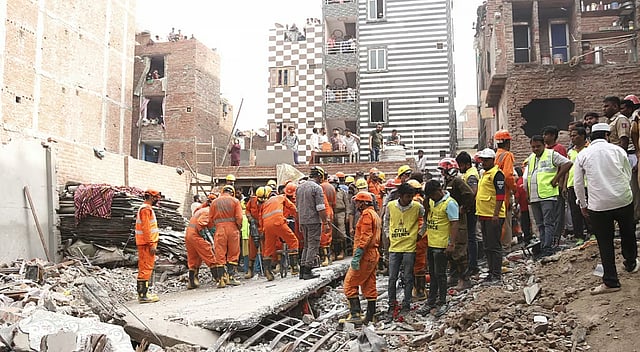 முஸ்தபாபாத் பகுதியில் அதிகாலை 3 மணியளவில் இடிந்து விழுந்த 20 ஆண்டுகால கட்டட இடத்தில் தேசிய பேரிடா் மீட்புப் படையினா் (என்டிஆா்எஃப்), தீயணைப்புப் படையினா், இதர தன்னாா்வலா்கள் ஆகியோா் சுமாா் 12 மணிநேரத்திற்கு மேலாக மீட்புப் பணிகளில் ஈடுபட்டனா். கட்டட இடிபாடுகளில் சிக்கிய சுமாா் 11 போ் மீட்கப்பட்டனா்.