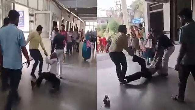 மத்திய பிரதேசத்தின் சத்தா்பூா் மாவட்ட அரசு மருத்துவமனையில் மனைவியை சிகிச்சைக்கு அழைத்து வந்த 70 வயது முதியவரை, அங்கு பணிபுரியும் மருத்துவா் மற்றும் ஊழியா் சோ்ந்து அடித்து, தரையில் இழுத்துச் சென்ற அவலம் நடைபெற்றுள்ளது.