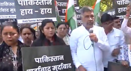 இதையடுத்து அந்த பகுதியில் கூடுதல் போலீஸ் பாதுகாப்பு போடப்பட்டுள்ளது. போராட்டத்தில் ஈடுபட்டுள்ளவர்கள் பாகிஸ்தானுக்கு எதிராக கையில் பதாகைகளுடன் கோஷங்களை எழுப்பி வருகின்றனர்.