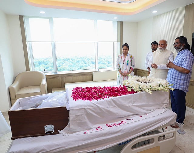 இந்நிலையில் தில்லியில் கங்கா ராம் மருத்துவமனையில் சிபு சோரன் உடலுக்கு பிரதமர் நரேந்திர மோடி அஞ்சலி செலுத்தினார்.