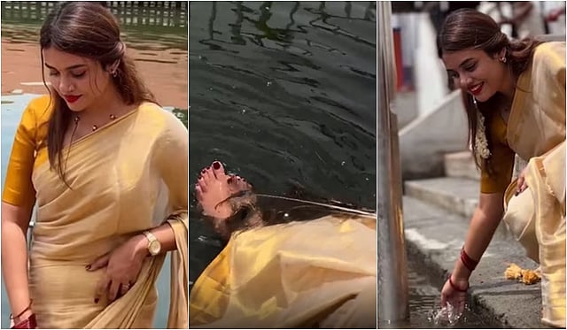 கேரளத்தை சேர்ந்த யூடியூப் பிரபலம் ஜாஸ்மின் ஜாஃபர், திருச்சூர் மாவட்டத்தில் உள்ள குருவாயூர் கோயிலின் குளத்தில் கால்களை நனைத்து ரீல்ஸ் எடுத்த விடியோ இணையத்தில் வைரலானது.