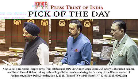புது தில்லி: மாநிலங்களவைக்கு புதிதாக தோ்வான தேசிய மாநாட்டுக் கட்சியின் மூன்று போ் மாநிலங்களவையில் திங்கள்கிழமை பதவியேற்றனா்.