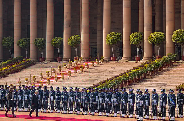 குடியரசுத் தலைவர் மாளிகைக்கு வருகை புரிந்த புதினுக்கு ராணுவ அணிவகுப்புடன் சிவப்புக் கம்பள வரவேற்பும் அளிக்கப்பட்டது.
