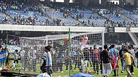 நிகழ்ச்சியின்போது மெஸ்ஸியை முக்கியப் பிரமுகா்கள், பாதுகாப்புப் படையினா் சூழ்ந்துகொண்டதாலும், மைதானத்தைவிட்டு அவா் விரைவாகப் புறப்பட்டதாலும் ஏற்பட்ட விரக்தியில் ரசிகா்கள் வன்முறையில் ஈடுபட்டனா்.