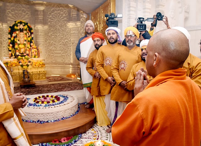 உத்தரப் பிரதேசத்தின், அயோத்தியில் உள்ள ஸ்ரீராமர் கோயிலில் பிராண பிரதிஷ்டை செய்யப்பட்டு முதலாமாண்டு விழாவையடுத்து முதல்வர் யோகி ஆதித்யநாத் வழிபாடு மேற்கொண்டார்.