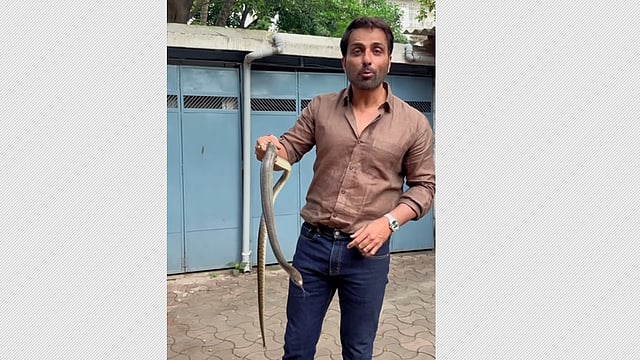பாலிவுட் நடிகர் சோனு சூட் தனது வீட்டு வளாகத்திற்குள் நுழைந்த பாம்பை வெறும் கைகளால் பிடித்தார்.