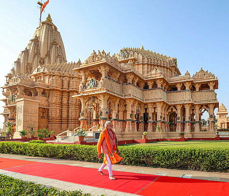 குஜராத் பயணம் மேற்கொண்டுள்ள பிரதமா் நரேந்திர மோடி, அந்த மாநிலத்தின் பிரசித்தி பெற்ற கிா் சோம்நாத் கோயிலில் ஞாயிற்றுக்கிழமை வழிபட்டாா்.