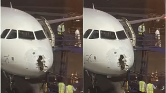 தில்லியில் இருந்து ஸ்ரீநகர் புறப்பட்ட இண்டிகோ விமானத்தின் முன்பகுதி ஆலங்கட்டி மழை மற்றும் பலத்த காற்றால் இன்று (மே 21) சேதமடைந்தது.