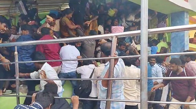 ஏகாதசியையொட்டி ஆந்திரம் ஸ்ரீகாகுளம் வெங்கடேஸ்வரா கோயிலில் சிறப்பு பூஜைகள் நடந்தது. இந்த பூஜையில் ஏராளமான பக்தர்கள் பங்கேற்றனர். பக்தர்கள் அதிகமாக வரத் தொடங்கியதால் திடீரென கூட்ட நெரிசல் ஏற்பட்டுள்ளது.