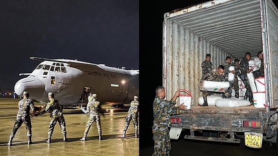 இதேபோன்று விமானப்படைக்குச் சொந்தமான ஏசி-130ஜே விமானத்தில் கூடாரங்கள், தார்பைகள், கம்பளிகள், நாப்கின்கள், உலர் பழங்களை அனுப்பிவைத்துள்ளது. மற்றொரு விமானத்தில் 9 டிரில்லியன் அவசரகால பொருள்களை அனுப்பியுள்ளது. மேலும், தேசிய பேரிடர் மீட்புப் படையைச் சேர்ந்த 80 வீரர்கள், அவசர கால கருவிகள் அனுப்பிவைக்கப்பட்டுள்ளன.