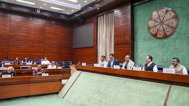 பாதுகாப்புத் துறை அமைச்சர் ராஜ்நாத் சிங், நாடாளுமன்ற விவகாரங்கள் துறை அமைச்சர் கிரண் ரிஜிஜு, அர்ஜுன் ராம் மேக்வால், ஆகியோர் அரசு சார்பில் கூட்டத்தில் பங்கேற்றுள்ளனர்.