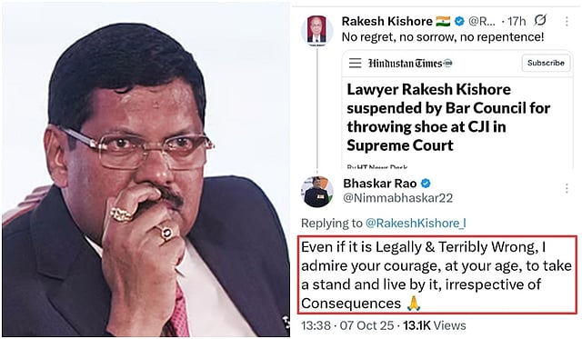 ”தலைமை நீதிபதி மீது நடத்தப்பட்ட தாக்குதல், அனைத்து இந்தியர்களையும் கொதிப்படையச் செய்துள்ளது” என்று பிரதமர் நரேந்திர மோடி கண்டனம் தெரிவித்திருக்கும் நிலையில், கர்நாடகத்தைச் சேர்ந்த பாஜக நிர்வாகி, வழக்குரைஞருக்கு ஆதரவு தெரிவித்திருக்கிறார்.