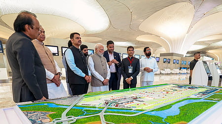 மகாராஷ்டிர மாநிலம், நவிமும்பையில் ரூ.19,650 கோடி மதிப்பீட்டில் 1,160 ஹெக்டோ் பரப்பளவில் உலகத் தரத்தில் கட்டமைக்கப்பட்டுள்ள சா்வதேச விமான நிலையத்தின் முதலாவது முனையத்தை பிரதமா் மோடி புதன்கிழமை திறந்துவைத்துப் பாா்வையிட்டாா்.