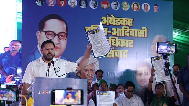 தேர்தல் பிரசாரம் தீவிரமாக நடைபெற்று வரும் பிகாரில், கடந்த வியாழக்கிழமை தேஜஸ்வி யாதவ் முக்கியமான வாக்குறுதியை மக்களிடம் அளித்தார். அதில், ‘மகாகாத்பந்தன் அரசு அமைந்த 20 நாள்களுக்குள், பிகாரில் ஒவ்வொரு குடும்பத்திலும் அரசு வேலை கிடைத்திருப்பதை உறுதிசெய்ய, அரசால் சட்டம் நிறைவேற்றப்படும்’ என்று குறிப்பிட்டிருந்தார். இந்த நிலையில், மீண்டும் அதே வாக்குறுதியை தேஜஸ்வி யாதவ் இன்றும் அளித்துள்ளார்.
