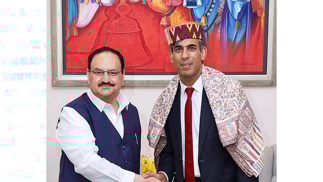 மத்திய சுகாதாரம் மற்றும் குடும்ப நலத் துறை அமைச்சர் ஜே.பி. நட்டா, பாஜகவை அறிந்துக்கொள்ளுங்கள் (க்னோ பிஜேபி) எனும் திட்டத்தின் ஒரு பகுதியாக, தில்லியில் பிரிட்டன் அரசின் முன்னாள் பிரதமர் ரிஷி சுனக்கை, இன்று நேரில் சந்தித்து உரையாடியுள்ளார்.
