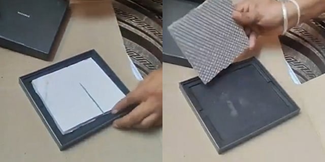 நல்லவேளையாக, பார்சலை பிரித்தபோது, அவர் அதனை விடியோ எடுத்துக் கொண்டார். பார்சலை பிரித்தபோது வெள்ளை நிற டைல்ஸ் இருந்தது விடியோவில் பதிவாகியுள்ளது.