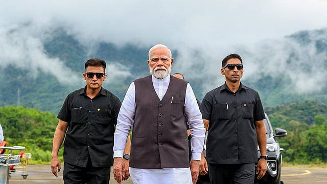 ஆனால், அவர் மணிப்பூரில், சரியாகச் சொல்ல வேண்டுமானால் தரையிறங்கியதுமுதல் புறப்பட்டது வரை, 5 மணி நேரத்துக்கும் குறைவாகவே இருந்தார்.