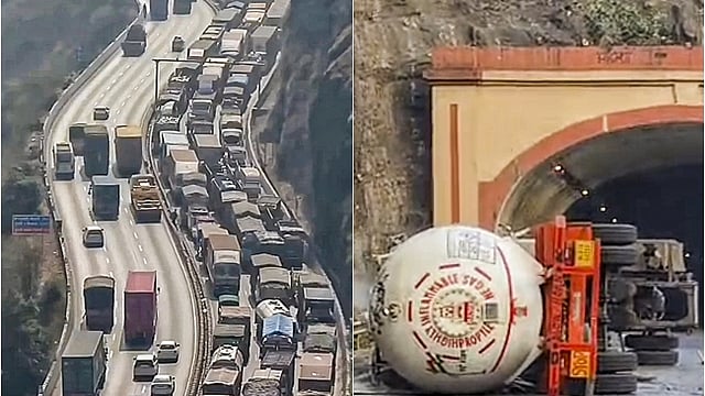 94.5 கி.மீ. தொலைவுள்ள இந்த ஆறுவழி அதிவிரைவுச் சாலை மும்பை-ராய்கட்-நவி மும்பை-புணே ஆகியவற்றை இணைக்கிறது. இந்தச் சாலையில் நாள்தோறும் ஆயிரக்கணக்கான வாகனங்கள் செல்கின்றன. செவ்வாய்க்கிழமை மாலையில் டேங்கா் லாரி ஒன்று இந்தச் சாலையில் கவிழ்ந்தது. அந்த லாரியில் எளிதில் தீப்பற்றக்கூடிய புரோபிலின் வாயு இருந்தது. இதனால், டேங்கரை பாதுகாப்பாக அங்கிருந்து அகற்றுவதில் பிரச்னை ஏற்பட்டது. சாலையின் இருபுறமும் வாகனங்கள் அணிவகுத்து நின்ால் மீட்பு வாகனங்களைக் கொண்டு வருவதிலும் சிக்கல் நீடித்தது. இதனால் நீண்ட தொலைவுக்குப் போக்குவரத்து நெரிசல் ஏற்பட்டது. இதில் ஆயிரக்கணக்கான வாகனங்கள் சிக்கி முன்னும் பின்னும் நகர முடியாத நிலை உருவானது.